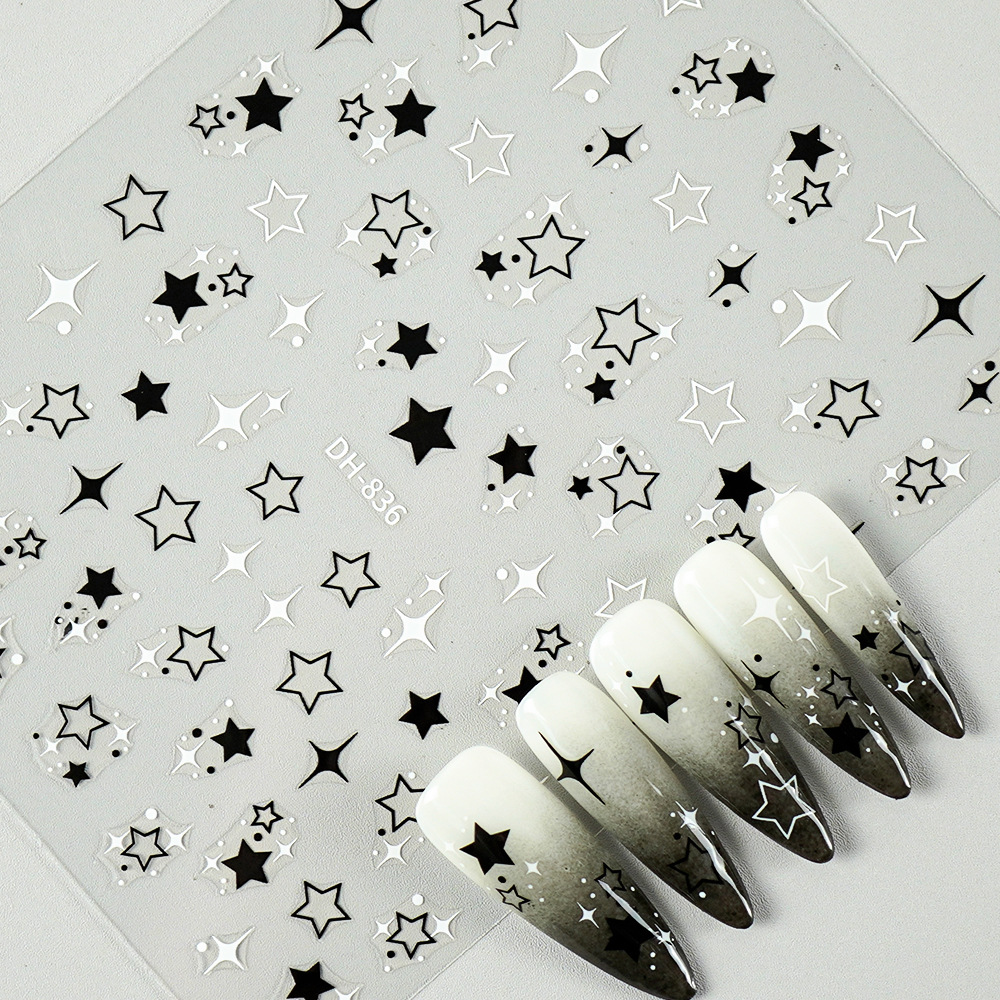 起爆ネイルシール3d立体不規則五角星ドーパミン透かし彫り白黒箔押し金と銀の爪のデカール