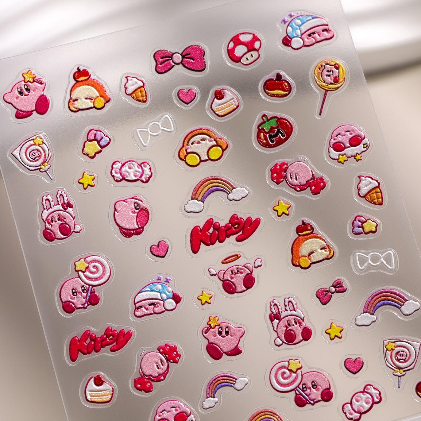 かわいいカービィネイルアートステッカー 5D レリーフ立体かわいいピンクカービィネイルステッカージュエリー YL スタイル