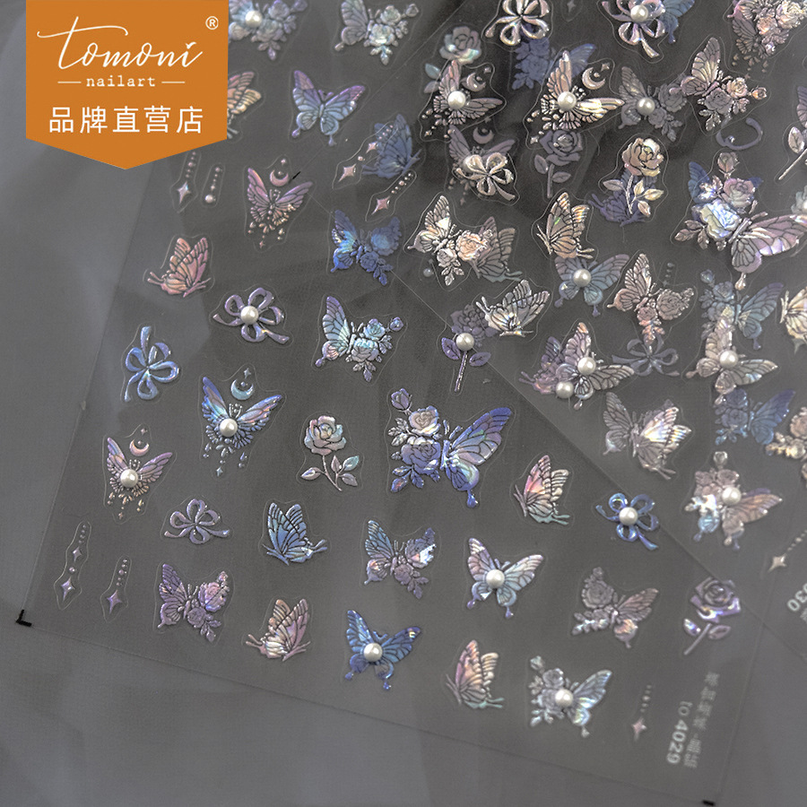 Tomoni結晶ドリルのネイルシールが爆発したレトロな爪は工場卸売りのナット蝶ネイルシール4029を貼った