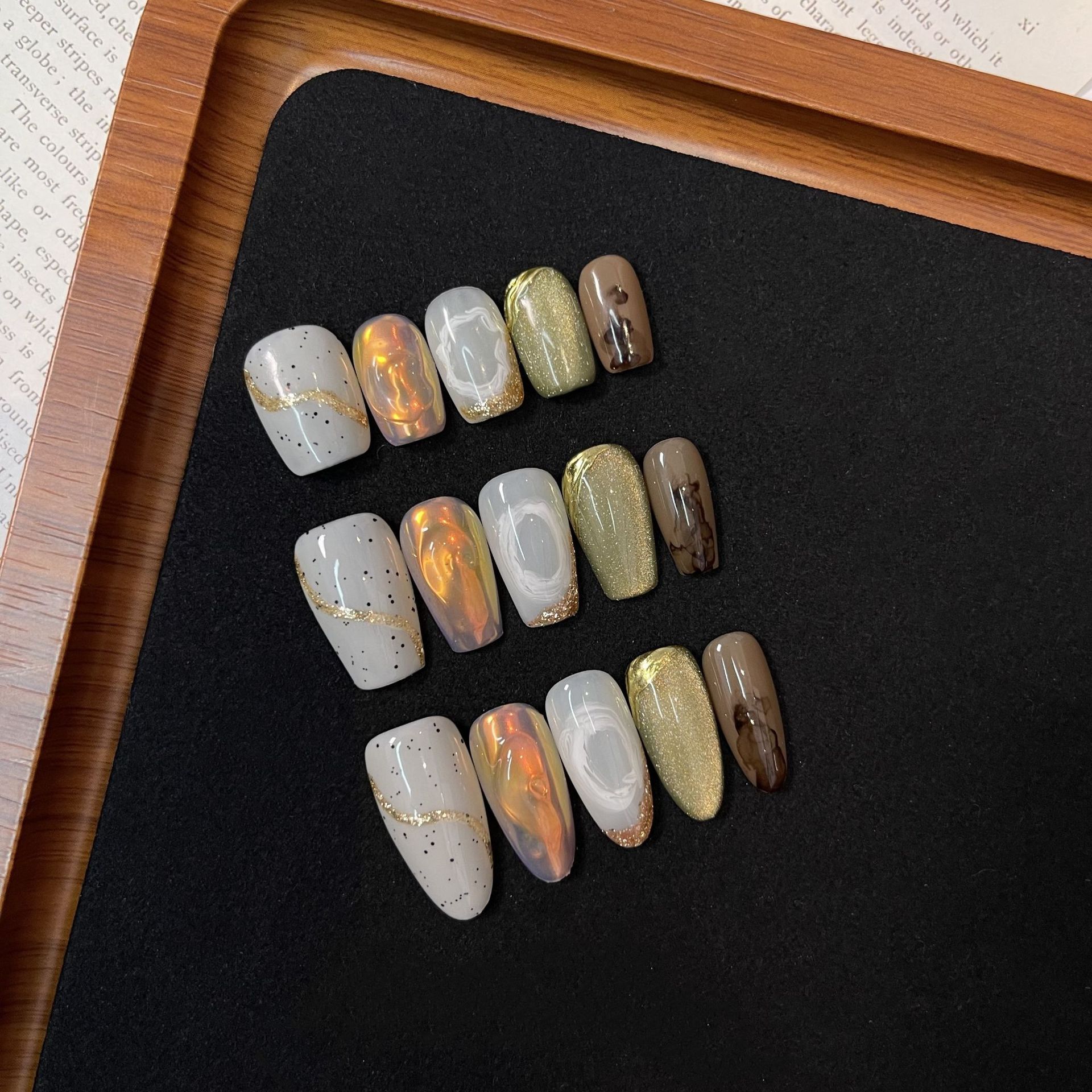 【フレンチモカ】純粋な手作業で甲のグラデーションを身につけています。