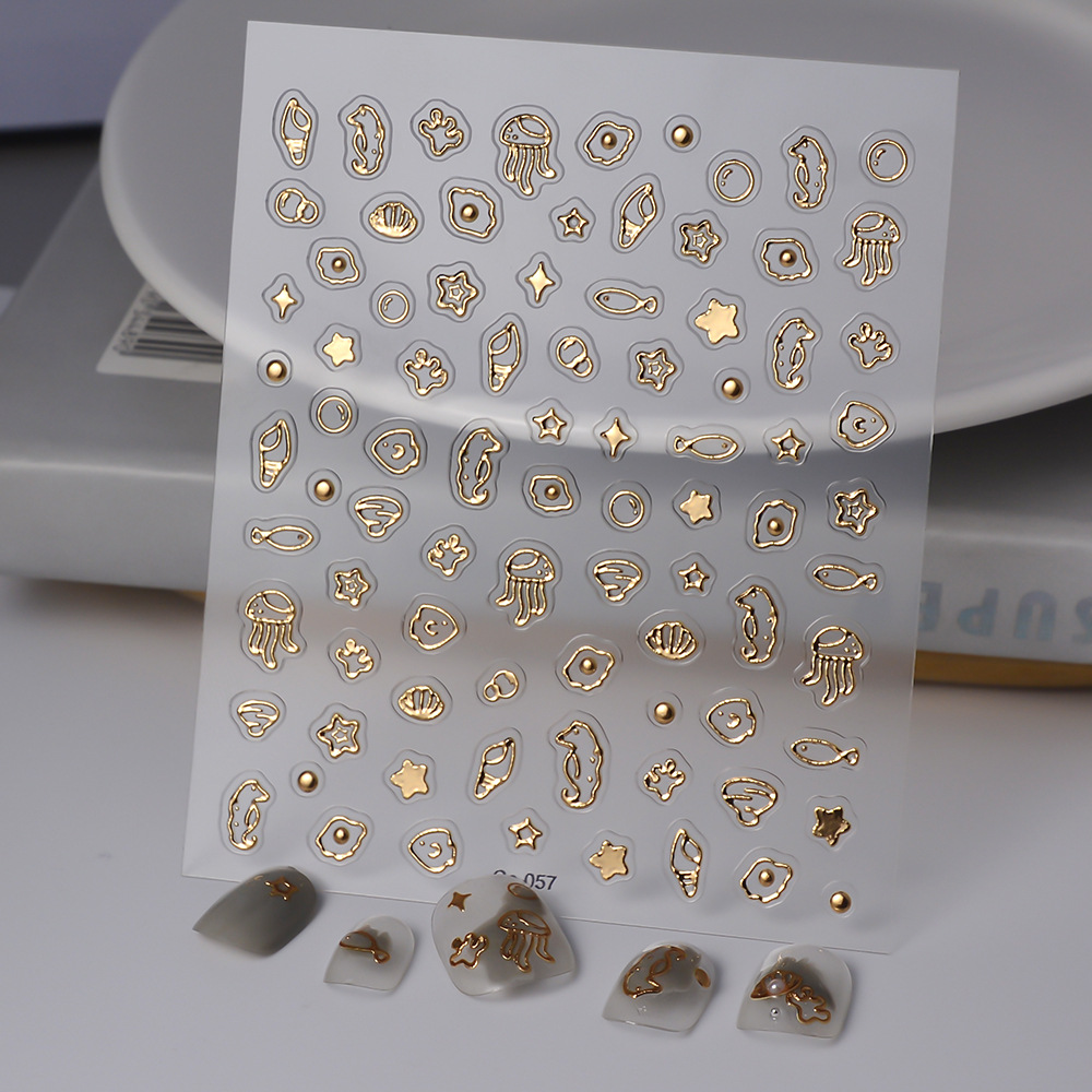 Coco notesクロスボーダー新品ネイルシールins箔押し5d立体海洋クラゲ背ゴム爪シール