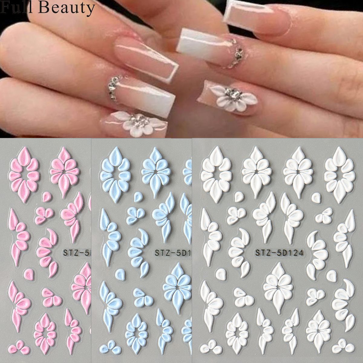 FULL BEAUTYクロスボーダー新作レリーフネイルステッカー立体レリーフ手描き花花びらネイルステッカー