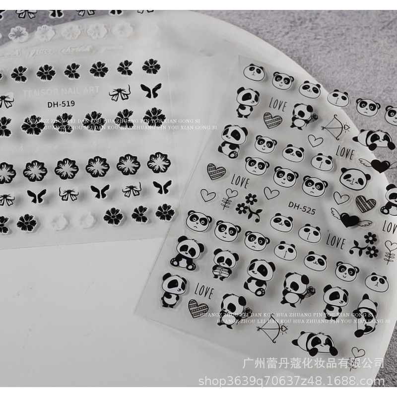 起爆ネイルシール薄透黒白色蝶ネクタイ大英語アルファベット国風パンダ墨竹爪貼り装飾