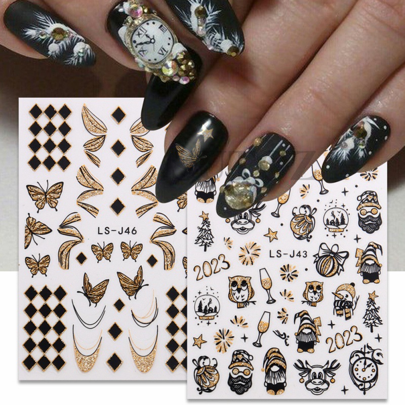 国境を越えた新しいネイルシール2023年のカウントダウン時計花火蝶フラッシュ粉バックテープ