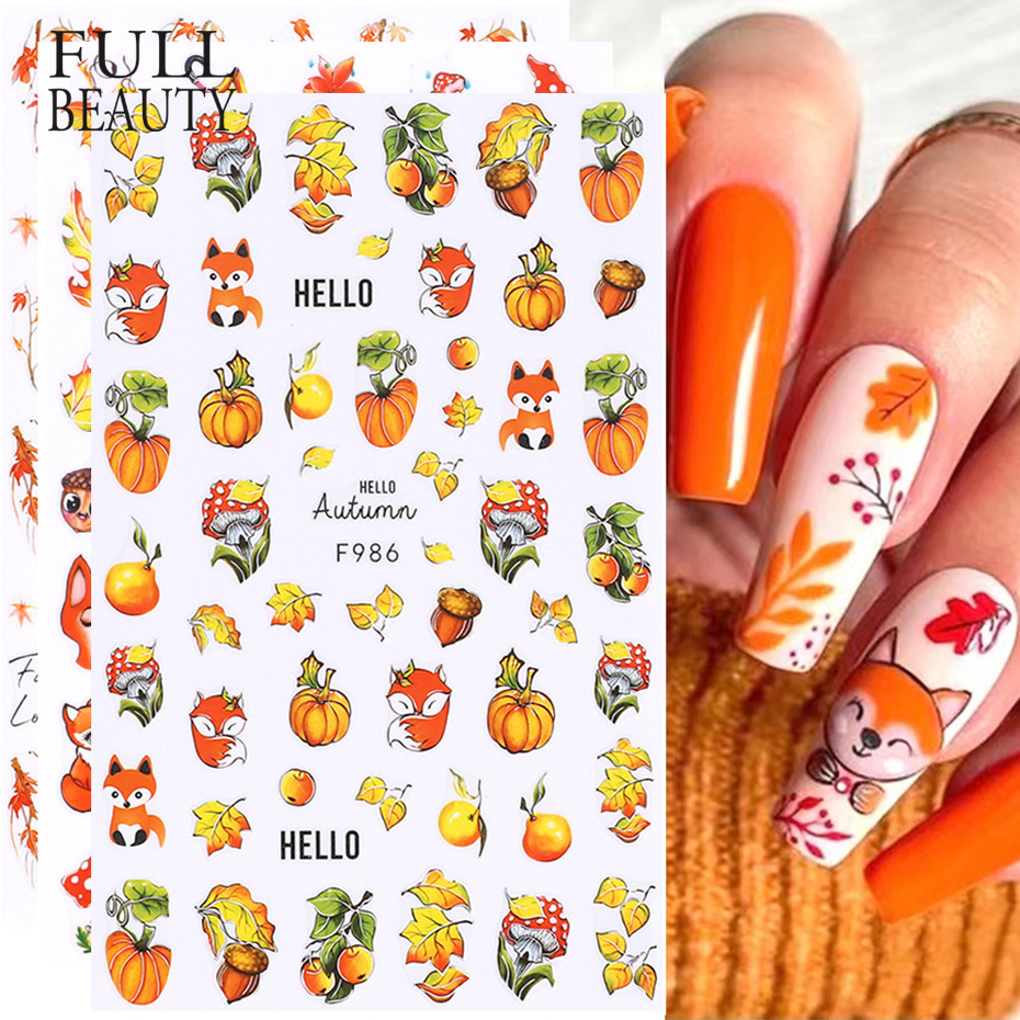 国境を越えた新しいネイルシール秋のカエデの葉の果実カボチャリスサンタクロース雪花バックゴム爪貼り
