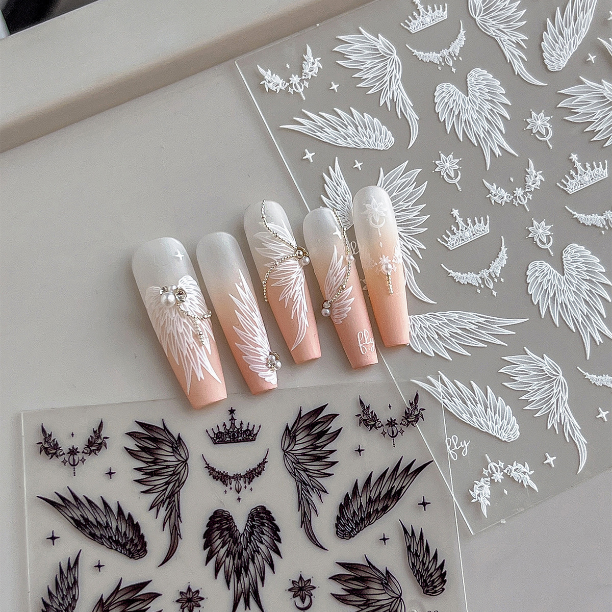 YITU蟻図平面翼ネイルステッカー芒星クラウン白黒グラデーションバックゴム爪装飾ステッカーYT4760