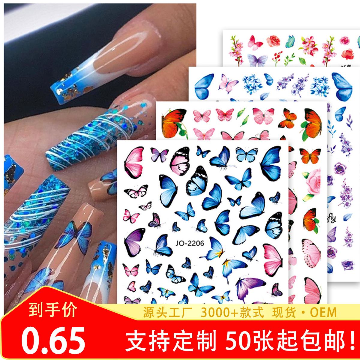 クロスボーダー热い贩売蝶ネイルステッカークロスボーダーins风クラシック水彩大蝶爪装饰デカールミックス