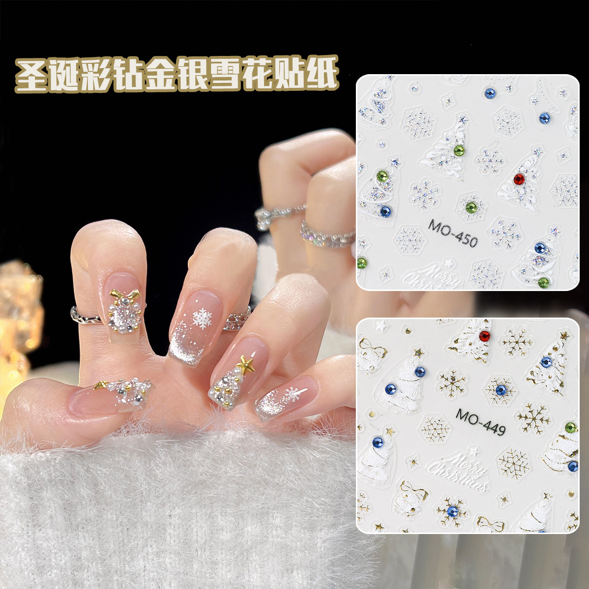 悦己クリスマスの新しい色のドリルの純度の高い銀クリスマスの雪のシリーズのネイルシールの甘いクリスマスの新年ins