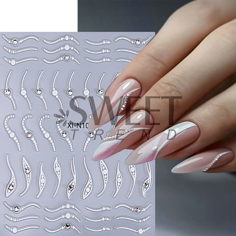 新しいドリルのネイルシールinsシンプルなフランスの国境を越えて白い線のドリルのジュエリーのネイルシールを販売しています