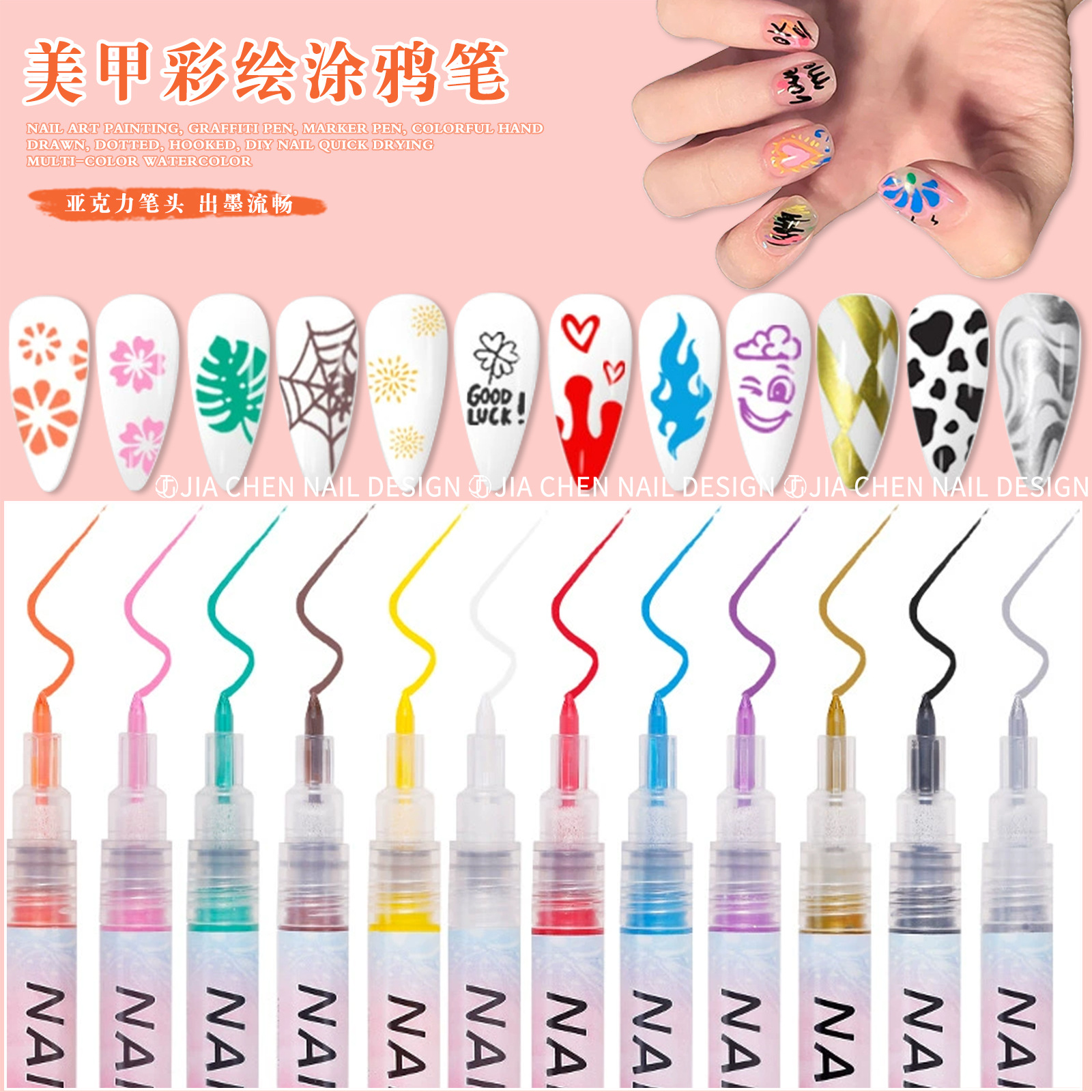 ホット販売ネイルアート塗装落書きペンマーカーペンカラー手描きドットフラワーフックラインネイル速乾性マルチカラー水彩卸売