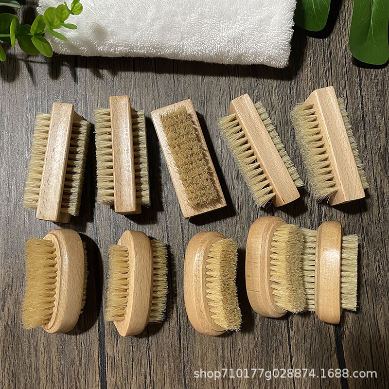 メーカー卸売ブナ材両面猪毛ネイルブラシサイザル麻指間クリーニングブラシ分解性マニキュアツールディスク翡翠ブラシ
