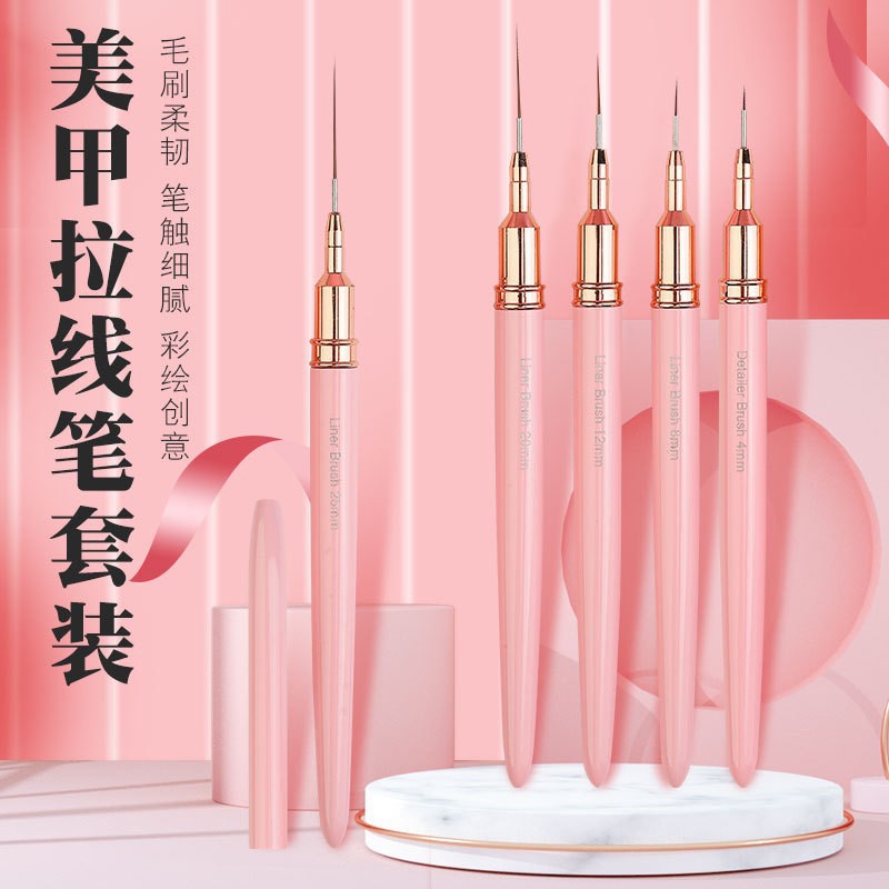 クロスボーダー起爆ネイルブラシ高颜値ピンク超極細ネイル針管糸引きブラシセットネイルサロン専用