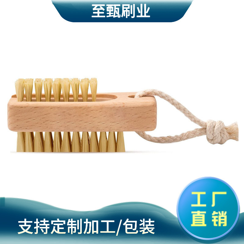 ロゴを彫ることができる豚のたてがみの両面爪ブラシケヤキ剣麻清潔ブラシ木製ネイルツール洗浄ブラシ卸売り