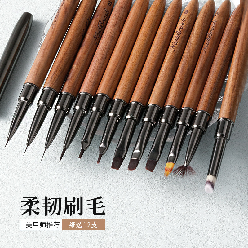 檀木棒ネイルブラシ彩色絵引き線ペン丸頭光治療ペンぼんやり扇形グラデーションデイジーギザギザ筆