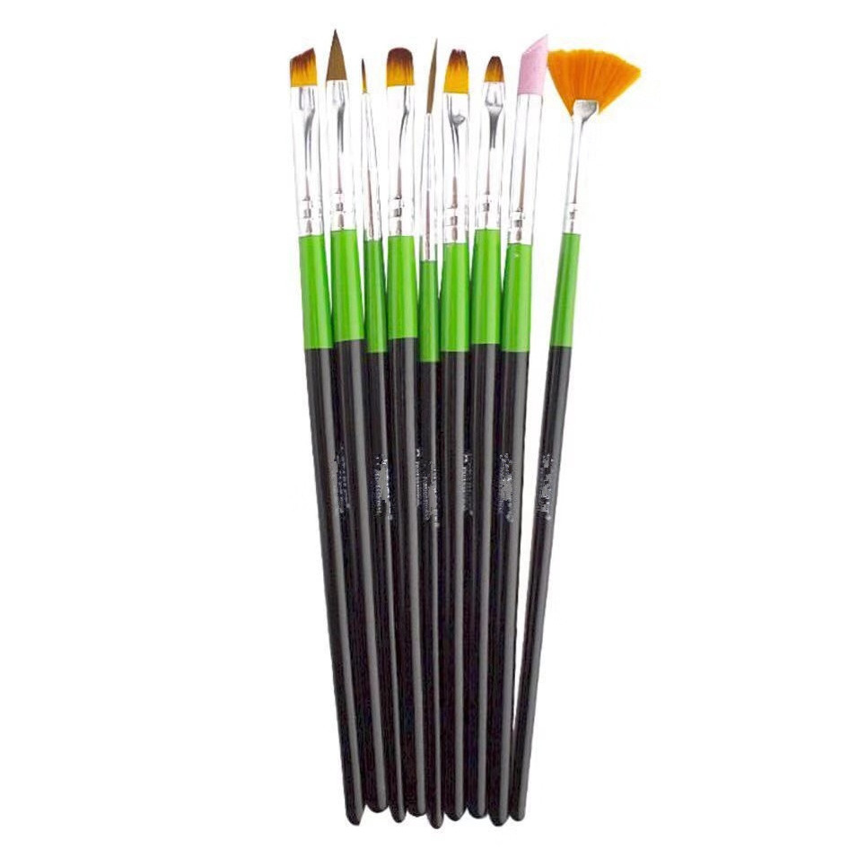 ネイルブラシのネイルセットの丸い頭の色絵の扇形の彫刻ペンの現物の卸売りの緑の間の黒い棒の9本のセット