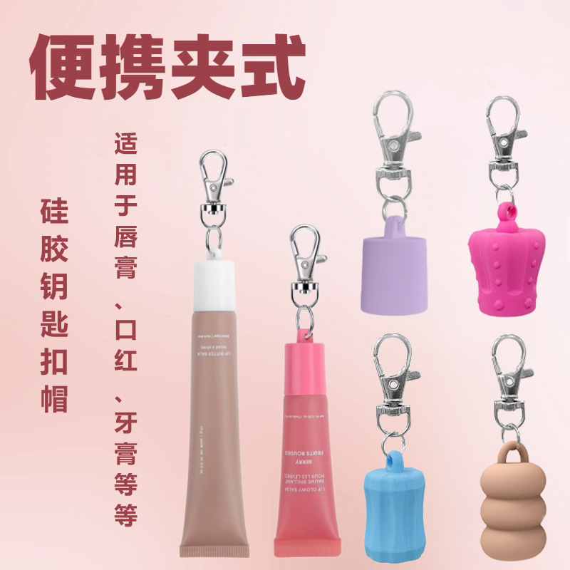 9種類の既製キーホルダー、口紅、リップグロス用シリコンキャップ、持ち運びに便利なリップグロス用シリコン交換キャップ、飾り