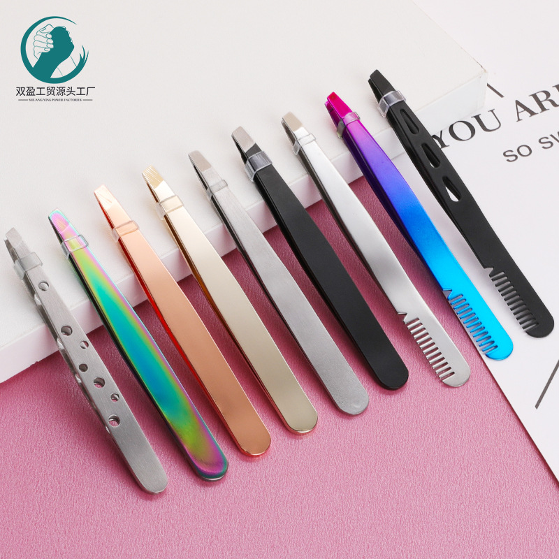 新しいタイプのステンレスの眉毛のはさみの色は櫛の斜めの口の平口の眉毛のクリップの偽のまつげの補助器のピンセットの卸売りです。
