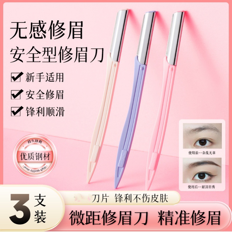 新しい3本の折り畳み式の眉毛修理刀の安全タイプの初心者の女性は眉毛を剃って眉毛を修理します。