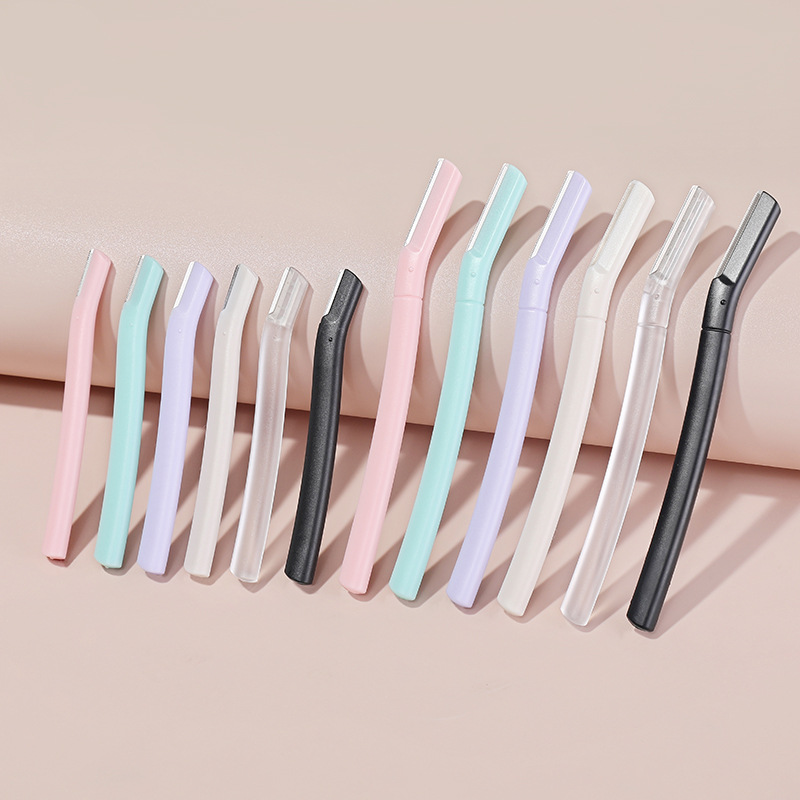 メーカー卸売シャープで安全なマクロ刃眉毛カミソリ新しいマルチカラーストレートハンドル眉毛カミソリ美容ツール