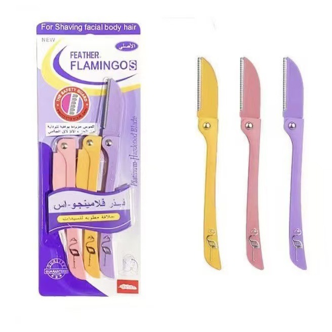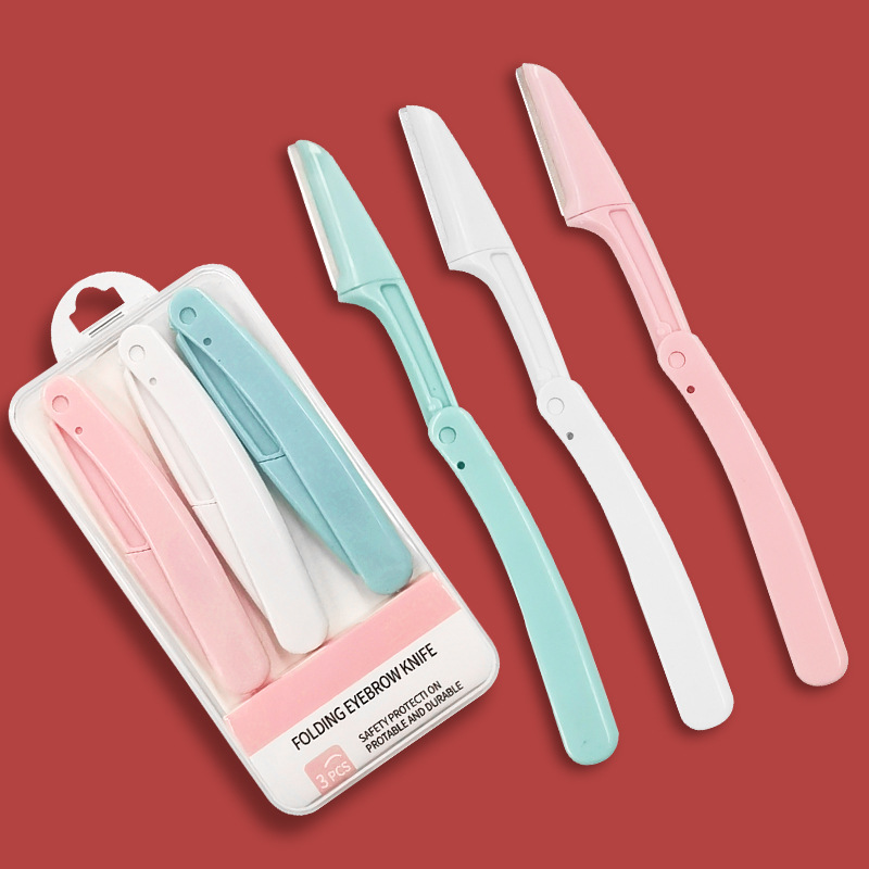 眉毛修理ナイフ安全型折りたたみ眉毛スクレーパー女性傷防止初心者セット高颜値三本入眉毛修理ナイフ