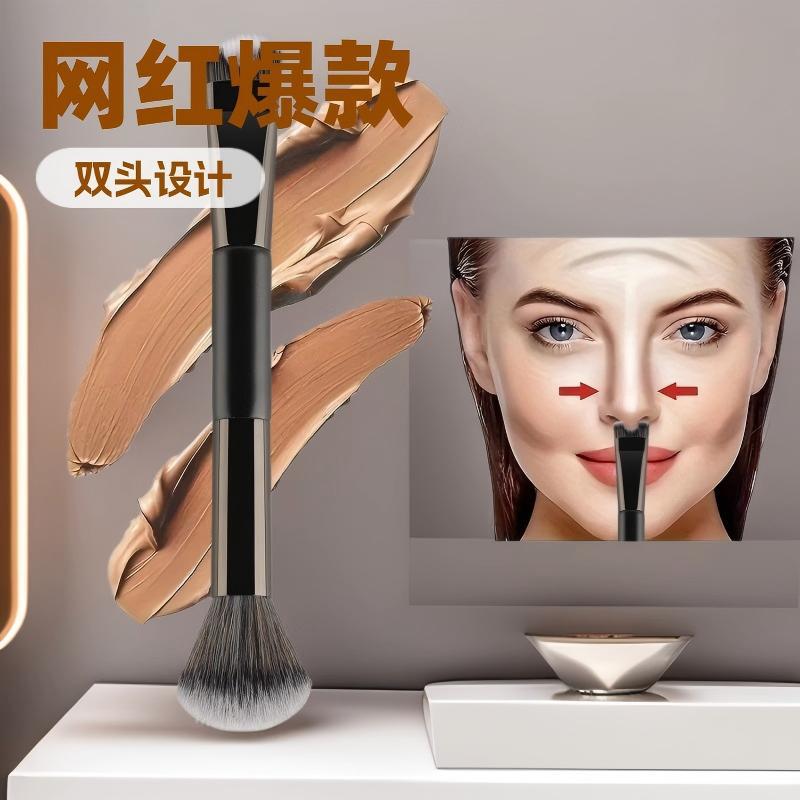 越境新製品 2-in-1 ダブルヘッドチークブラシ輪郭メイクブラシ U 字型ノーズ輪郭ブラシハイライトブラシソースメーカー