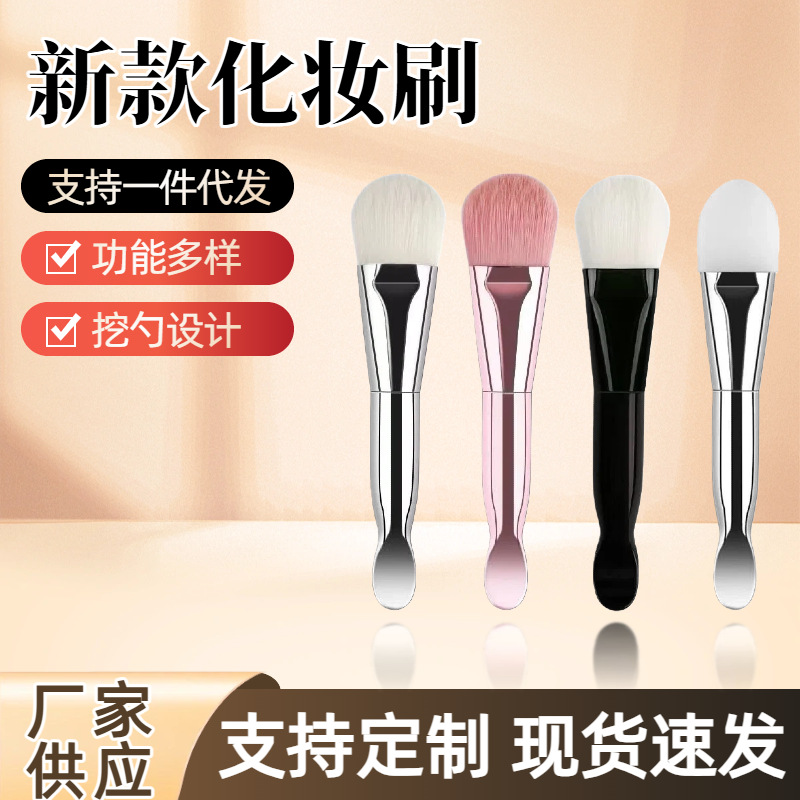 国境を越えた新作メイクブラシ、スプーン付き、柔らかい毛のフェイシャルマスクブラシ、美容ツール、両頭ファンデーションブラシ、スプーンデザイン