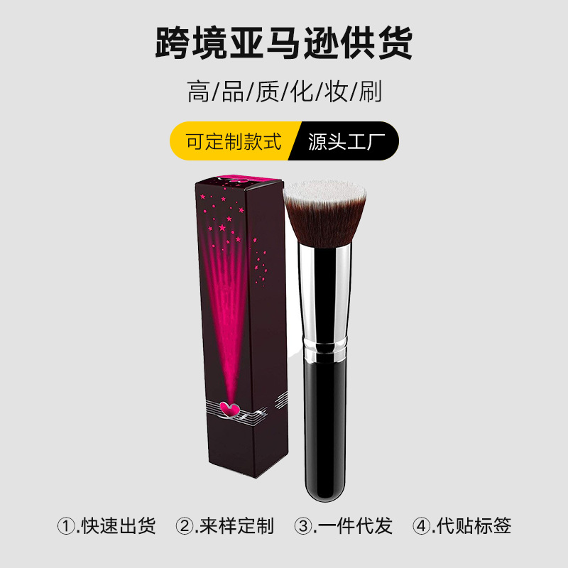 メーカー卸売りクロスボーダー単本携帯木柄化粧ブラシ頬紅ブラシ平頭散粉ブラシ化粧道具印ロゴ