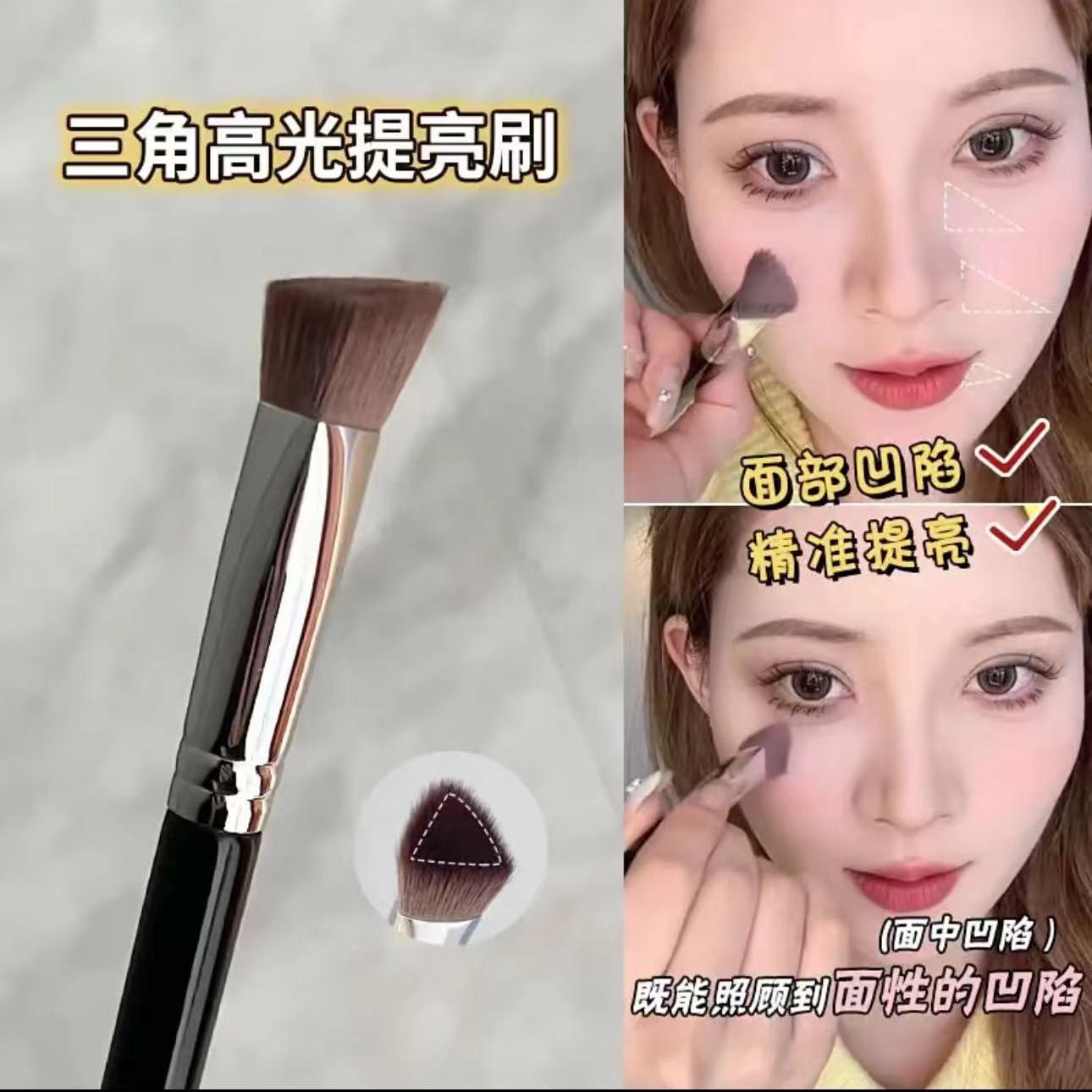 ネットの赤い新型の三角のコンシーラーの多機能のハイライトのブラシは顔の涙の溝の暗い目の周りの斜めの三角のアイロンのブラシを明るくします。