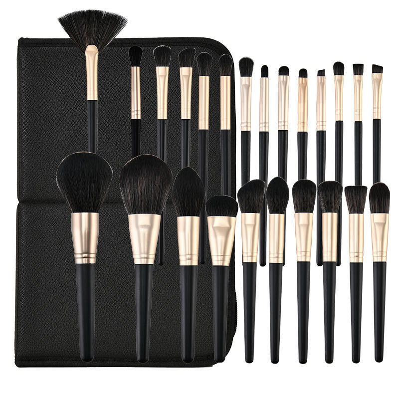 新しい24本入りブラックメイクブラシセット、チークブラシ、アイシャドウブラシ、ファンデーションブラシ、柔らかいマットゴールドファイバーヘアの美容ブラシ