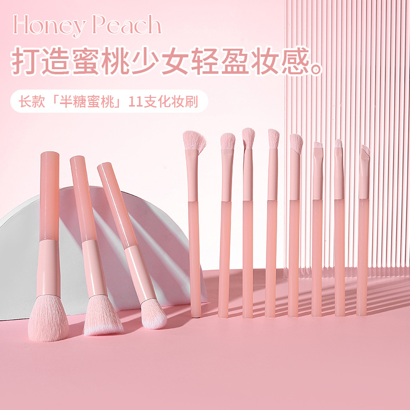 新しい11本の長い柄の蜜桃の粉の頬紅は顔の化粧の道具のアイシャドーのブラシを塗って傷のファンデーションの化粧のブラシのセットを覆います。