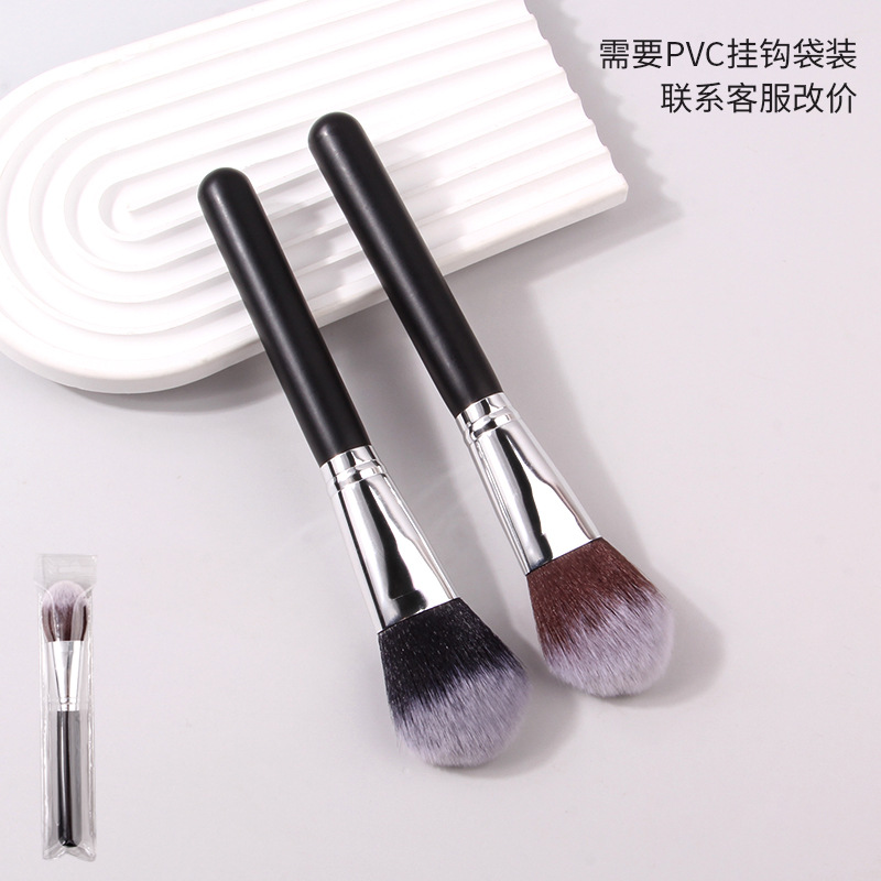 黒い木の柄の一本の散粉ブラシの柔らかい繊維の毛の化粧ブラシの携帯の頬紅のブラシの化粧道具の現物の卸売り