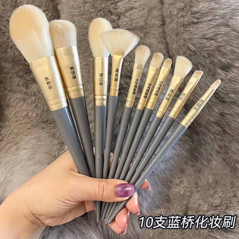 美化粧道具10本ブルーブリッジ化粧ブラシセットアイシャドー美容散粉ブラシ携帯ファンデーション軟毛化粧ブラシ