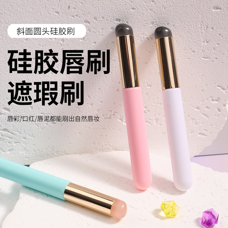 携帯型蓋付き斜面丸頭シリコンブラシ唇彩口赤唇泥ぼかし唇ブラシ叩きペンコンシーラーブラシ