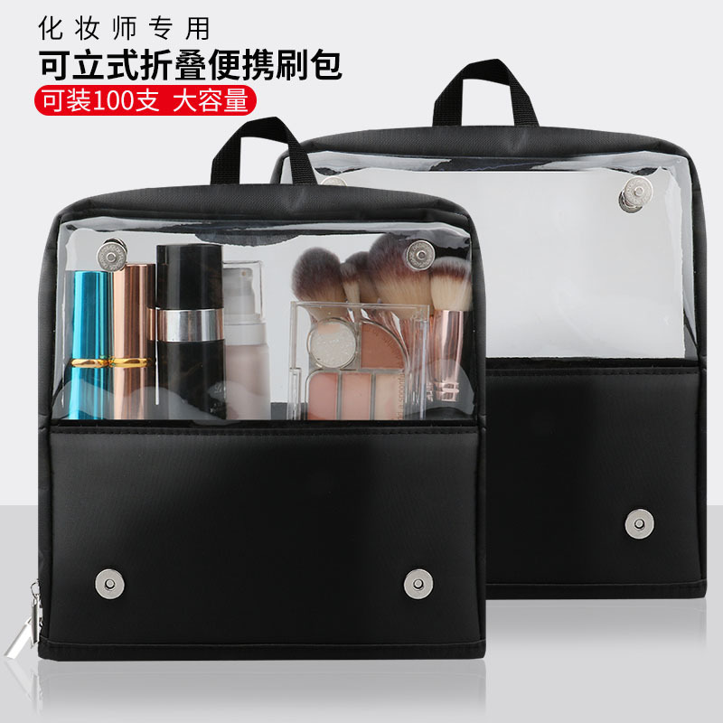 新しいメイクブラシバッグ、半透明、防水、大容量、便利なハンドヘルド収納バッグ、縦型折りたたみメイクバッグ、ポータブル