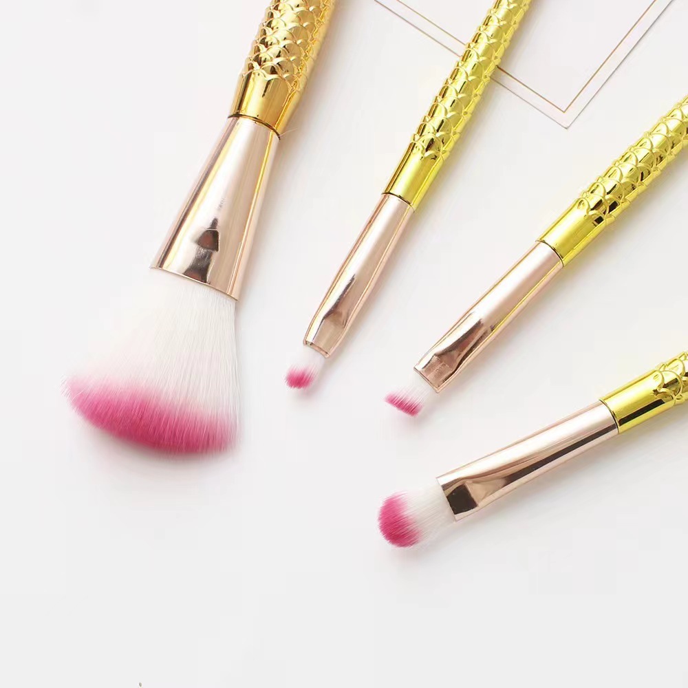 国境を越えて人気のある4本の人魚の尾化粧ブラシメッキ版の散水ブラシのアイシャドーブラシのブラシセット