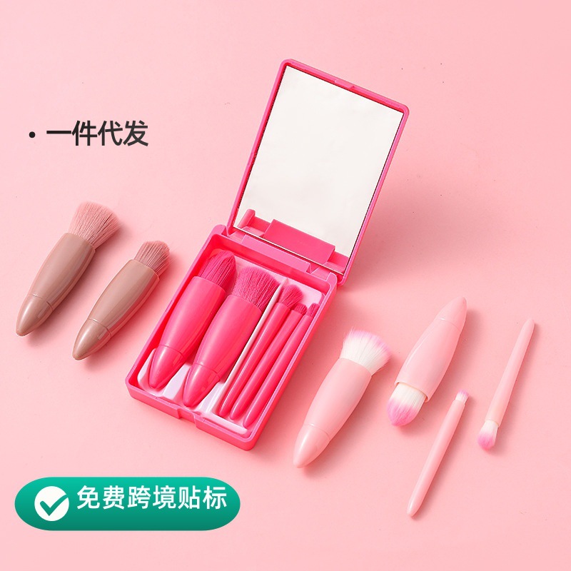 アップグレード金5本化粧ブラシセットミニ携帯型鏡ケース多機能アイシャドー化粧ブラシ散粉頬紅ブラシ