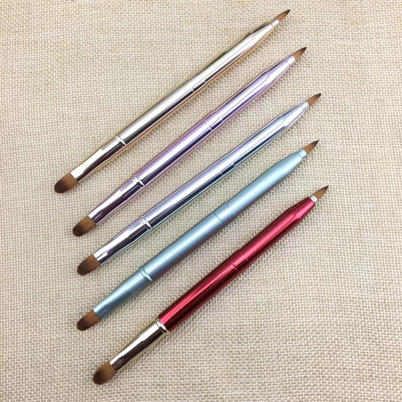 現物化粧ブラシ金属伸縮二頭唇ブラシ蓋付き携帯唇ブラシ口紅ブラシ化粧道具