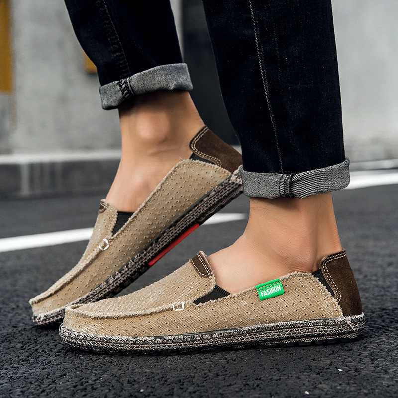 北京布靴の黒いキャンバスは靴のひもが簡単で、耐摩耗性ゴムの外底の怠け者の靴です。