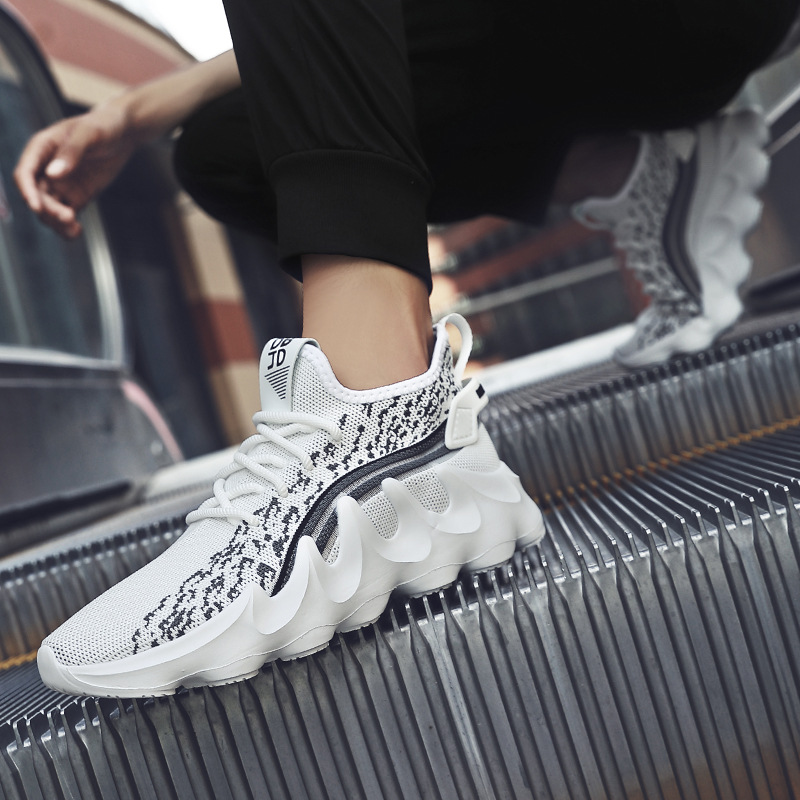 潮男靴の新型ネット布飛織運動靴の大きいサイズの青年ランニング靴の越境炎の底の軽いカジュアルなココナッツ靴