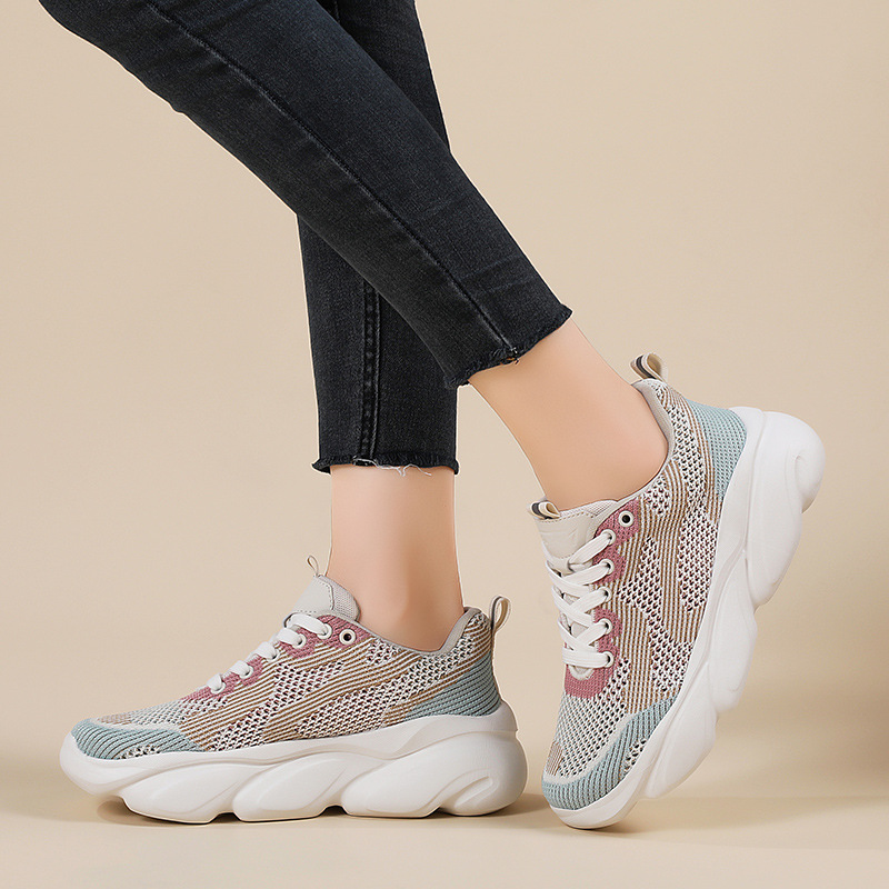 2024新型越境網面快適通気性女性カジュアル運動靴韓国版ファッションファッションファッション厚い底女性板靴