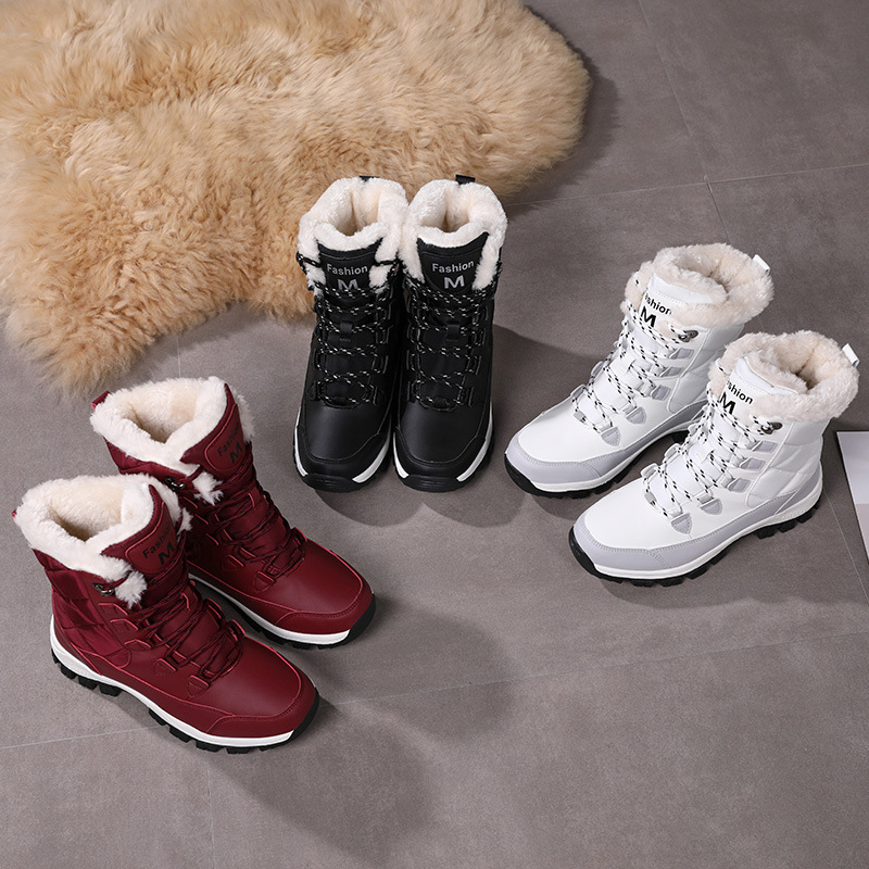 2025年クロスボーダー新作冬用ベルベット厚手暖かい耐摩耗性アウトドア登山靴、スノーブーツ、レディースハイカットコットンシューズ