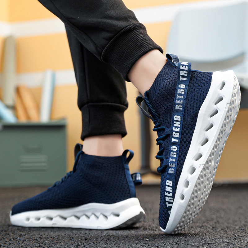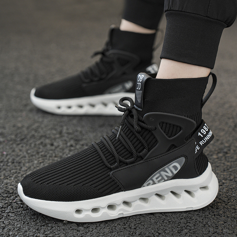2025年秋新作 ハイカットソックスシューズ メンズ 厚底スニーカー 通気性メッシュ ユース ランニングシューズ トレンドシューズ 男性用