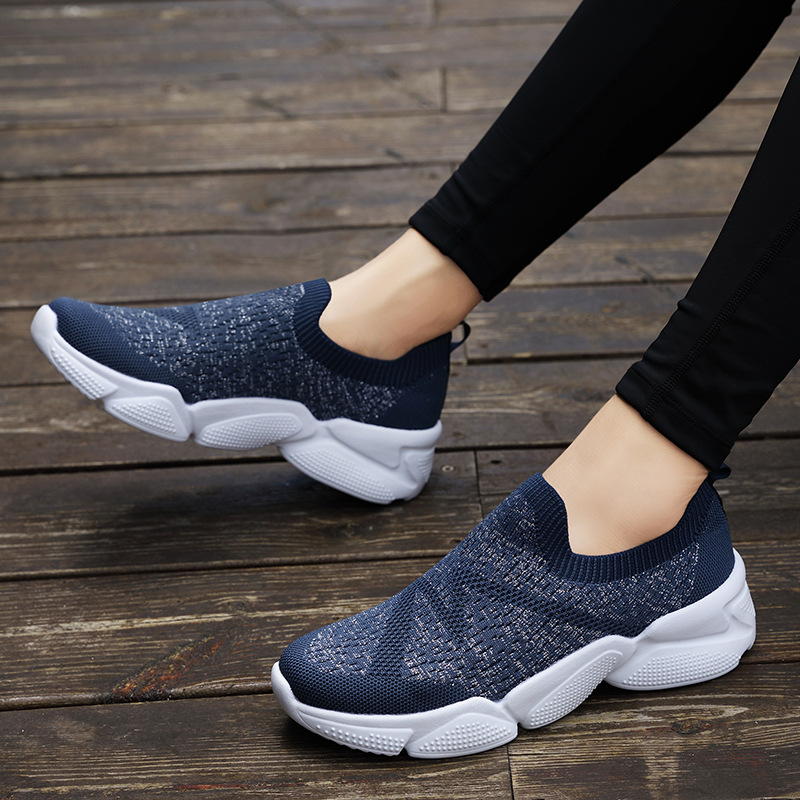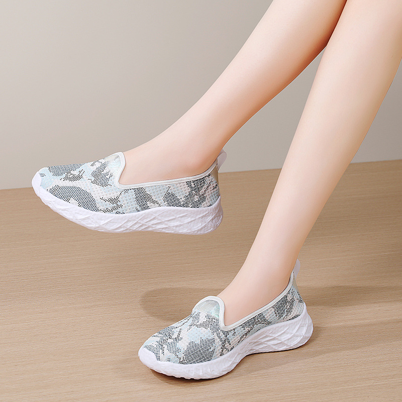 2024新型ファッション母靴女性中高年カップル健歩靴夏の通気性飛織レジャー運動布靴
