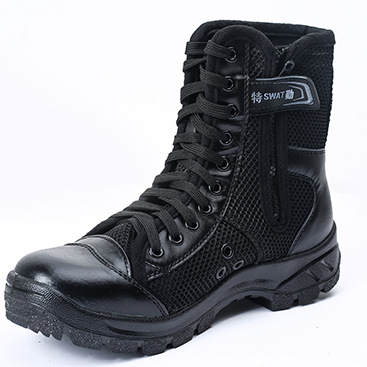 夏のネットの目の保安の作戦靴の戦術靴の黒色の高い靴の屋外の靴の蹴り防止の衝突防止の警備靴の男女の男性式