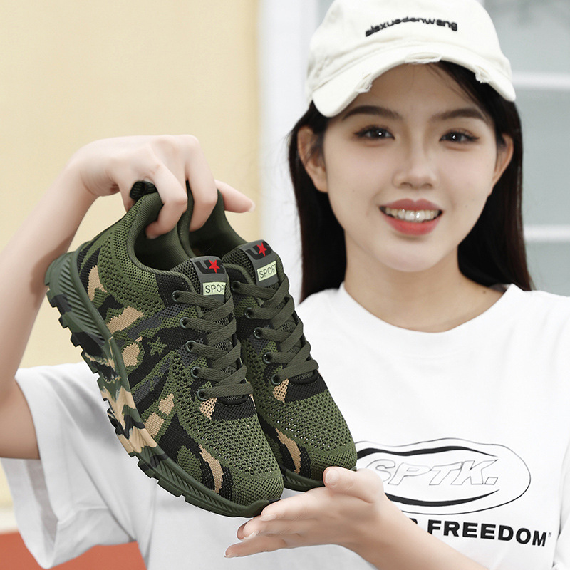 アウトドア迷彩靴男女同タイプの通気性単層登山靴運動訓練靴