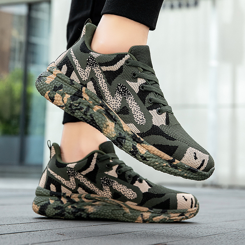 新しいカップルの大きいサイズの厚い底の迷彩のカジュアルな運動靴の男性の軽やかな旅行靴の厚い底の軍事訓練のランニング靴の女性
