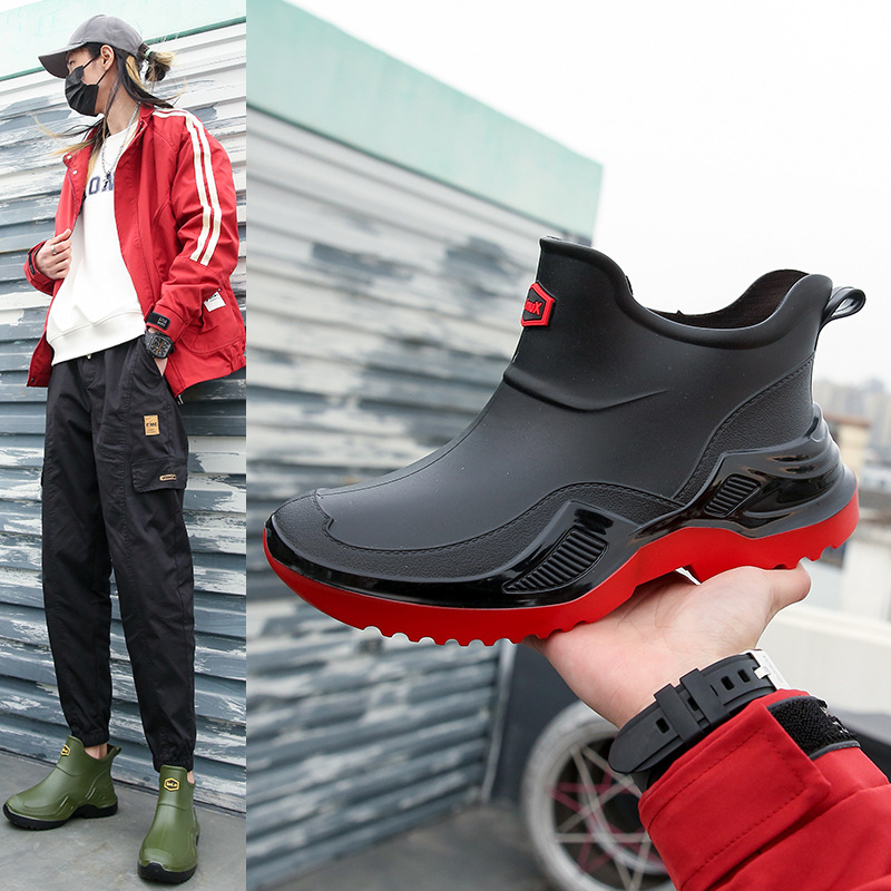クロスボーダー雨靴ファッション男性防水靴夏滑り止め雨靴成人中筒ゴム靴台所仕事専用靴