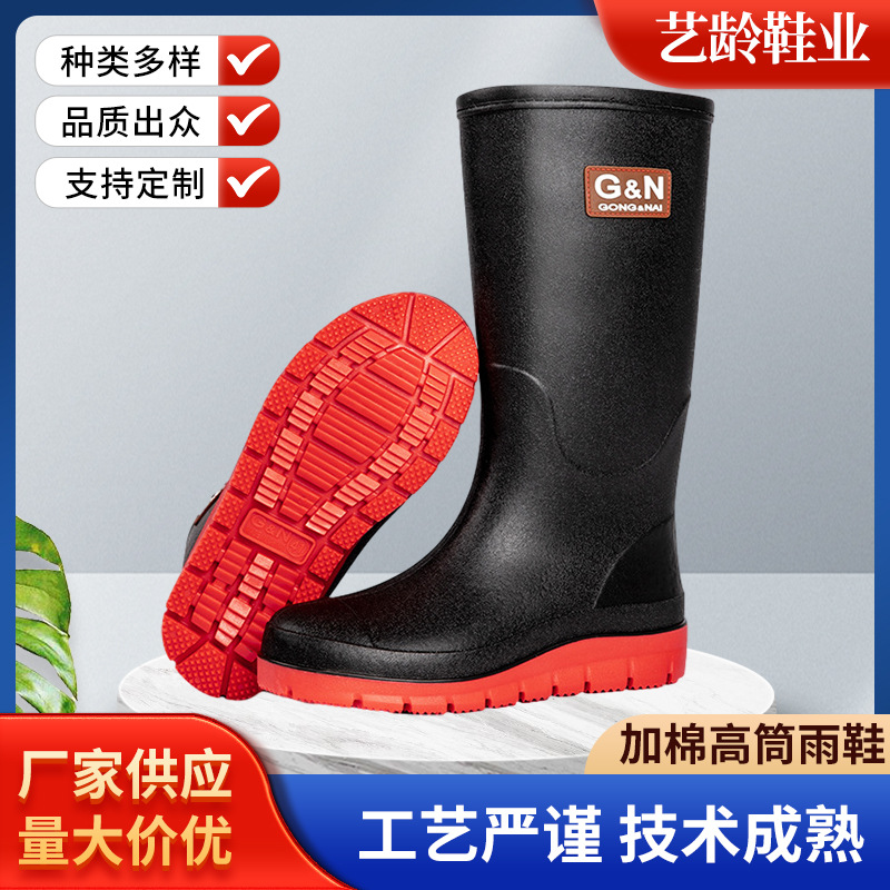 綿入り保温成人ファッション高筒雨靴男性タイプ屋外滑り止め防水靴工事現場ゴム靴男性雨靴