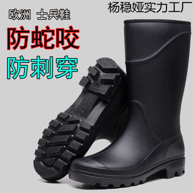 メンズレインブーツ、ミリタリーハイソール、耐摩耗性、ハイチューブ、大型労働保護ウォーターシューズ、防水、滑り止め、防臭建設現場ゴム靴