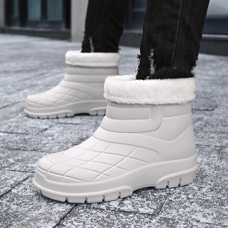 冬のアウトドア男子雪地靴防水滑り止め保温中筒中年一体綿靴ベルベット釣り洗車雨靴